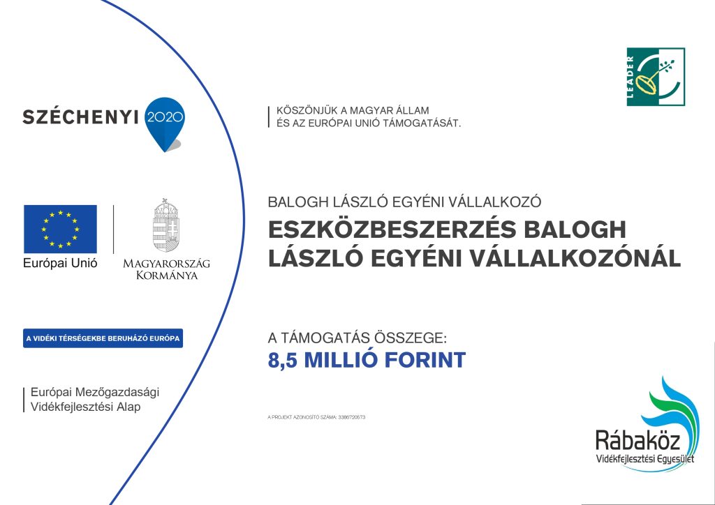 - Projekt címe: Eszközbeszerzés Balogh László Egyéni Vállalkozónál